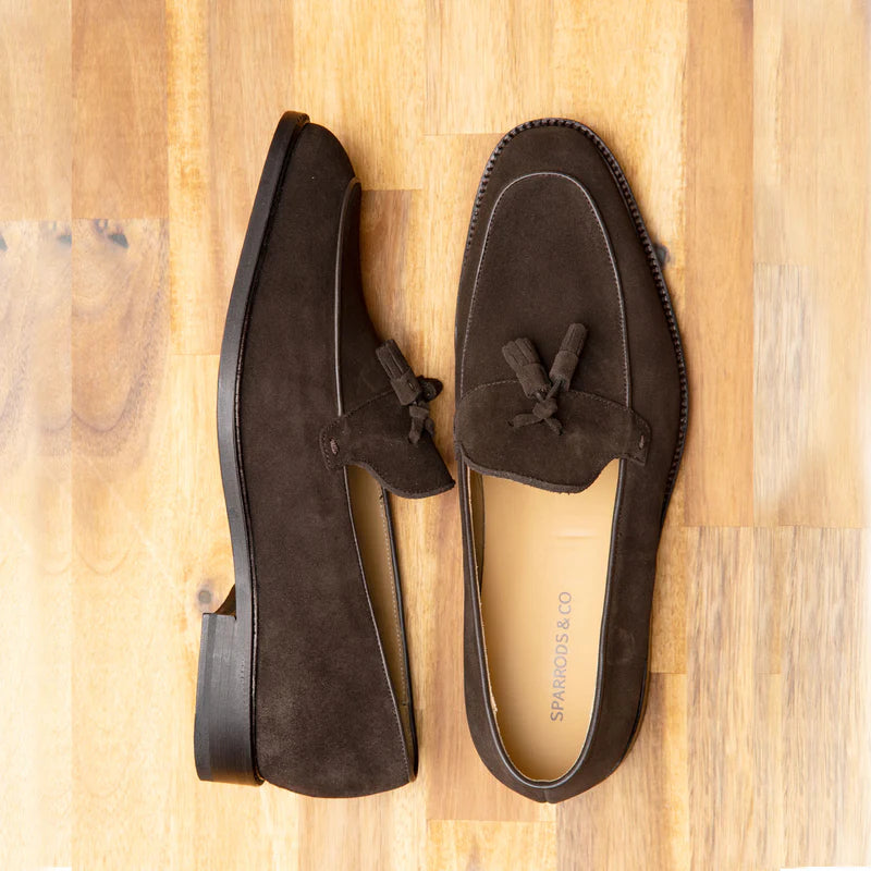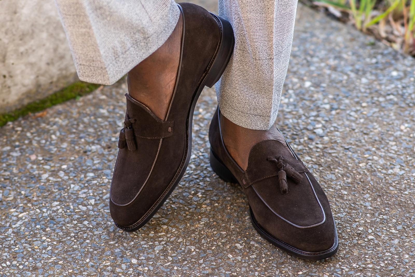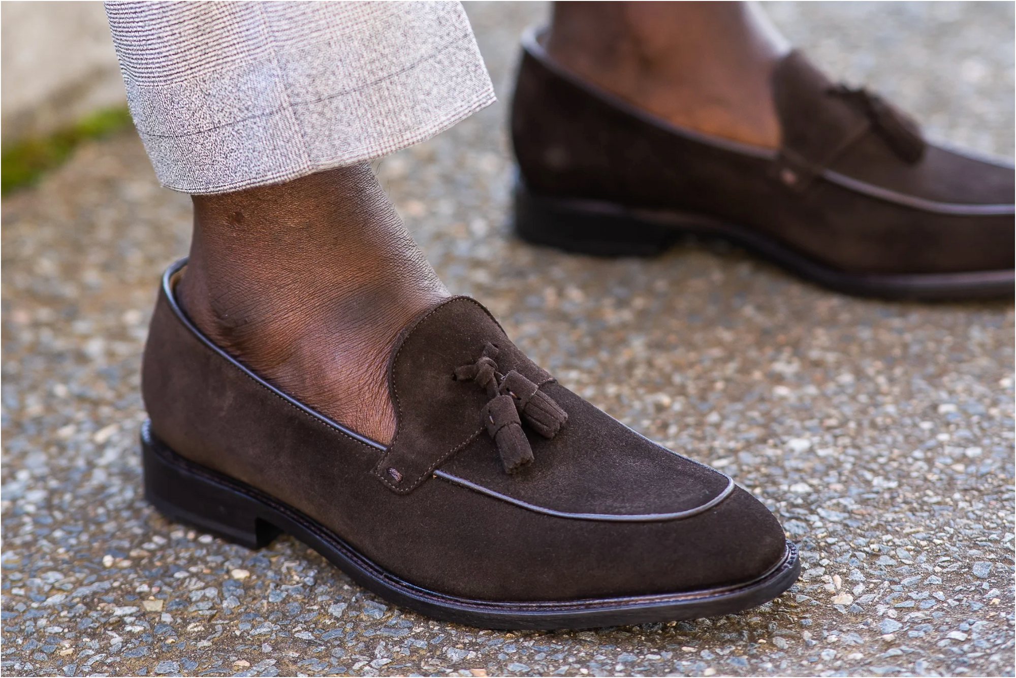 Fully lined with soft calf leather for comfort and easy to break in with excellent arch support. Style these rich brown suede tassel loafers with a tailored blazer or a sharp slim fit suit. For a more relaxed outlook, pair them with jeans, chinos, or khakis—socks optional.