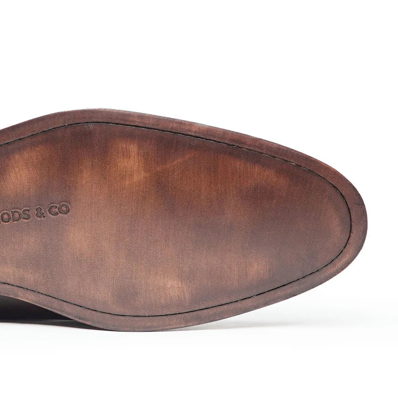 We use vegetable-tanned leather for the outsole, with a stacked rubber injection at the heel for maximum traction.