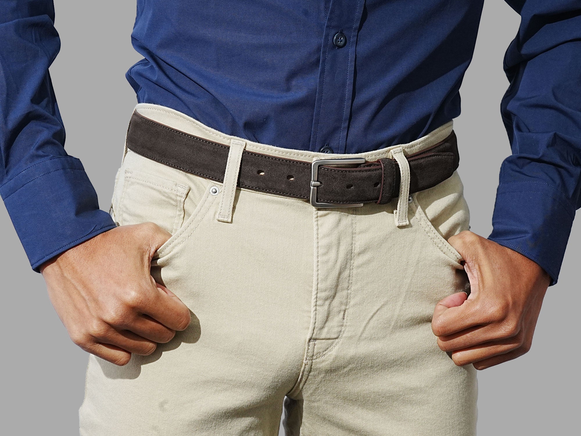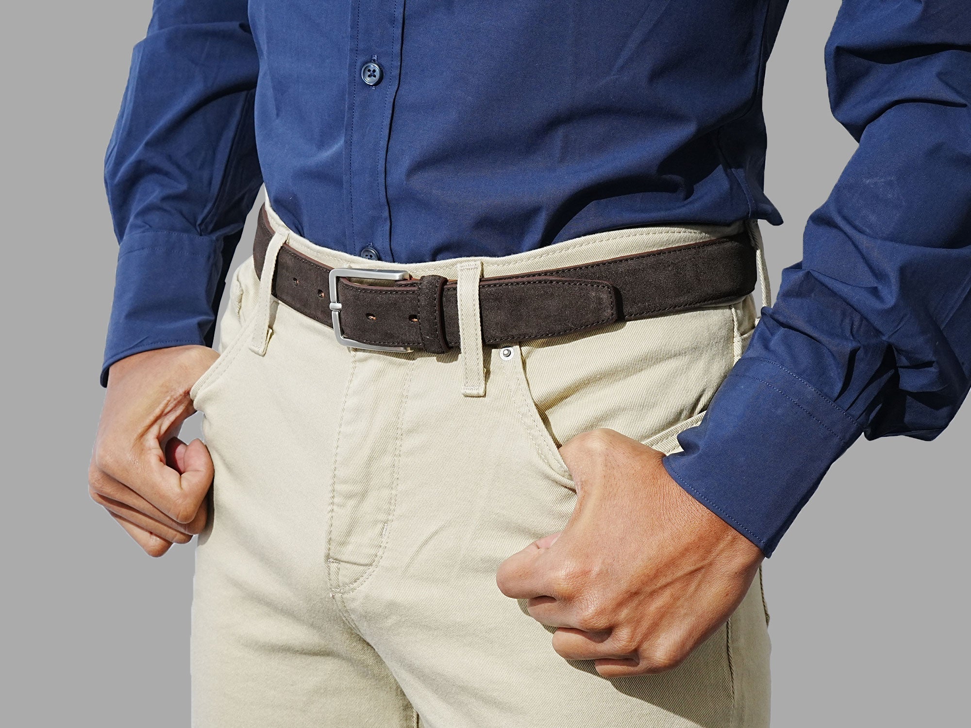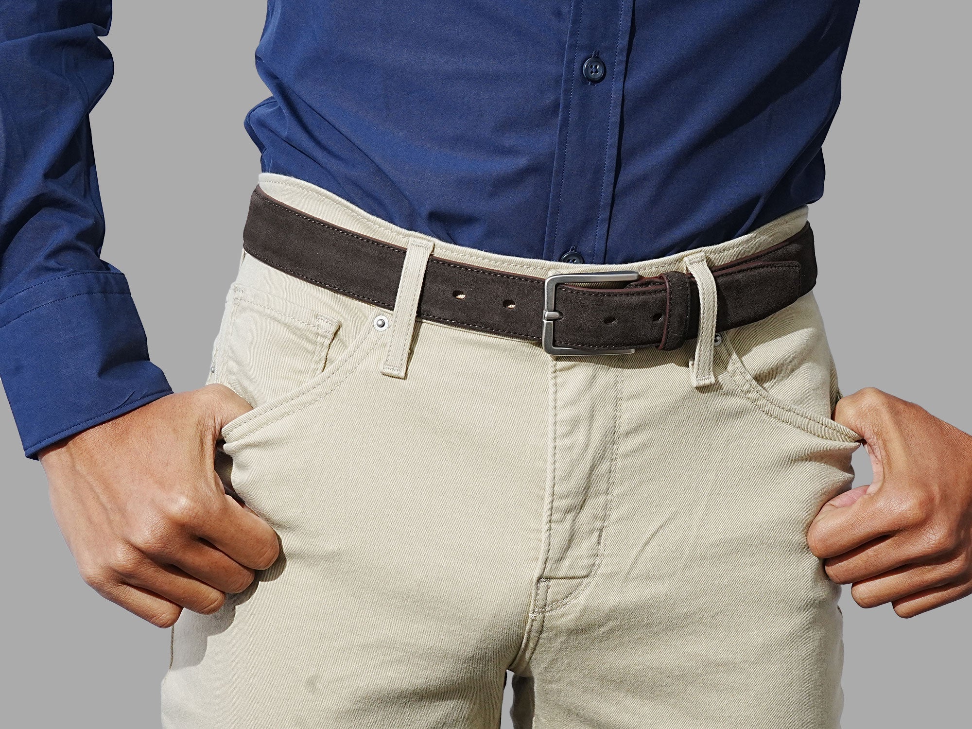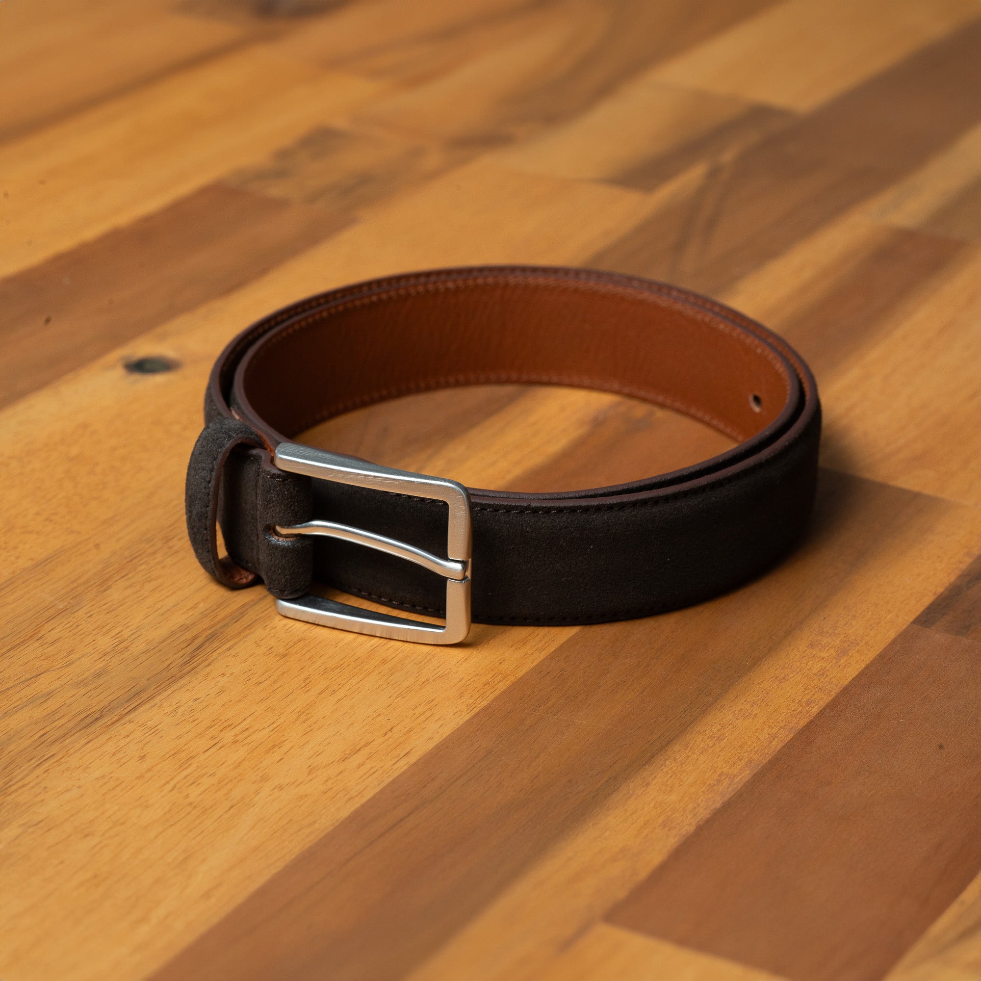The Stalwart brown suede belt combines strength and ease of wear, ensuring it holds up regular use. Unlike traditional full-grain leather, suede has a supple feel, rich texture, and natural depth, making it a standout accessory for all occasions.