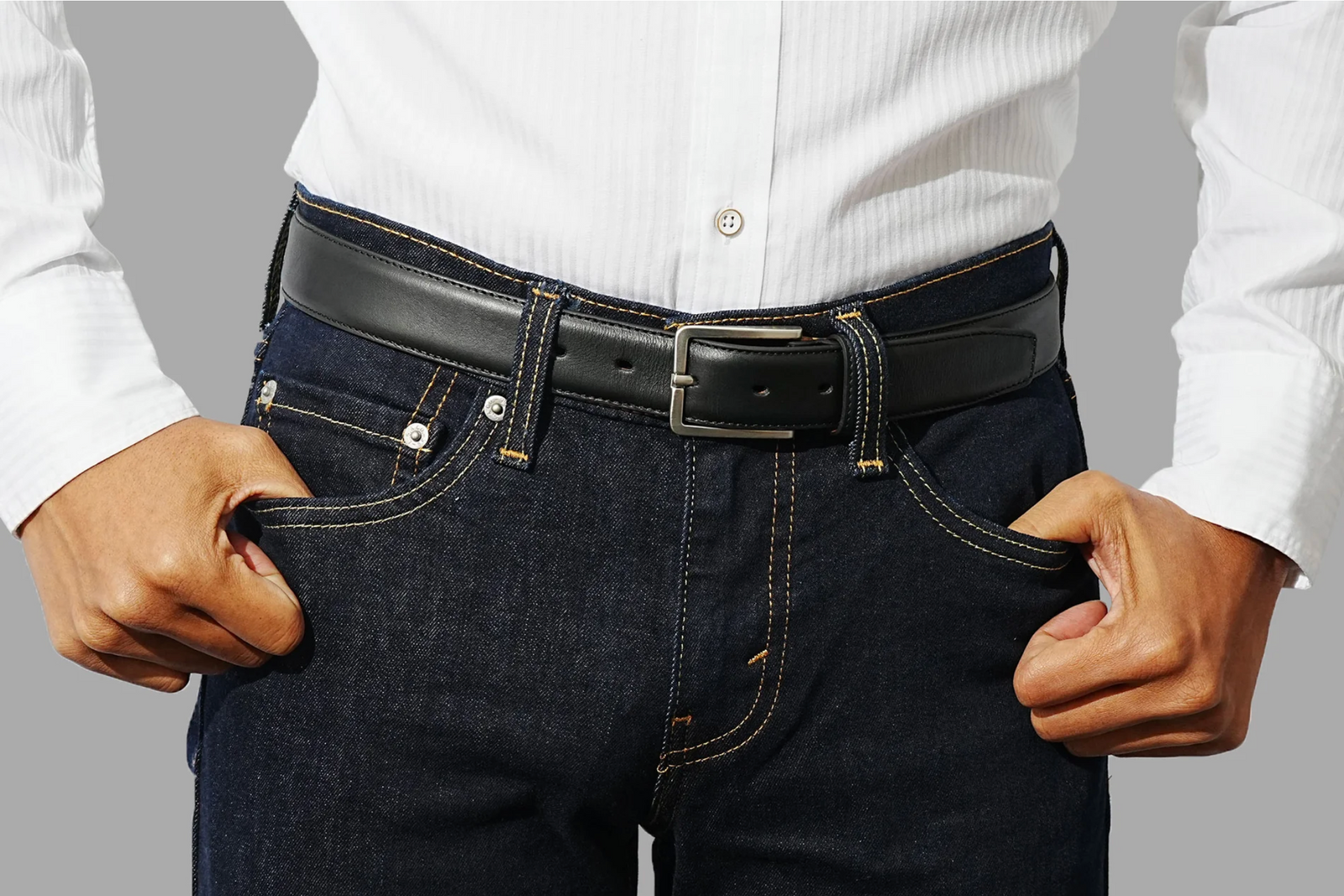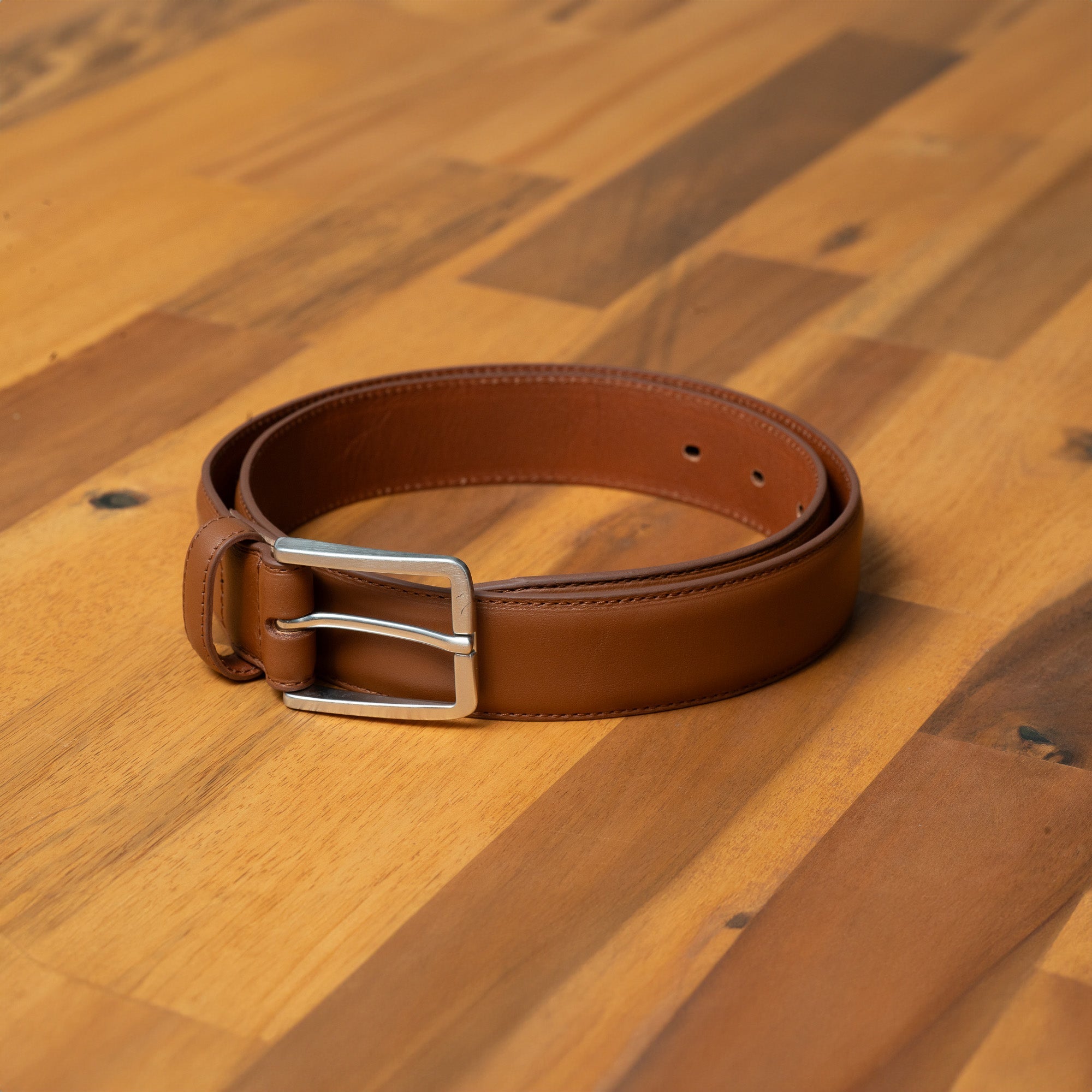 Our belts are made entirely from leather with no cardboard or synthetic fillers. The full calfskin lining and solid edge side stitching bind the layers together, creating a durable accessory that holds its shape for years of constant wear.