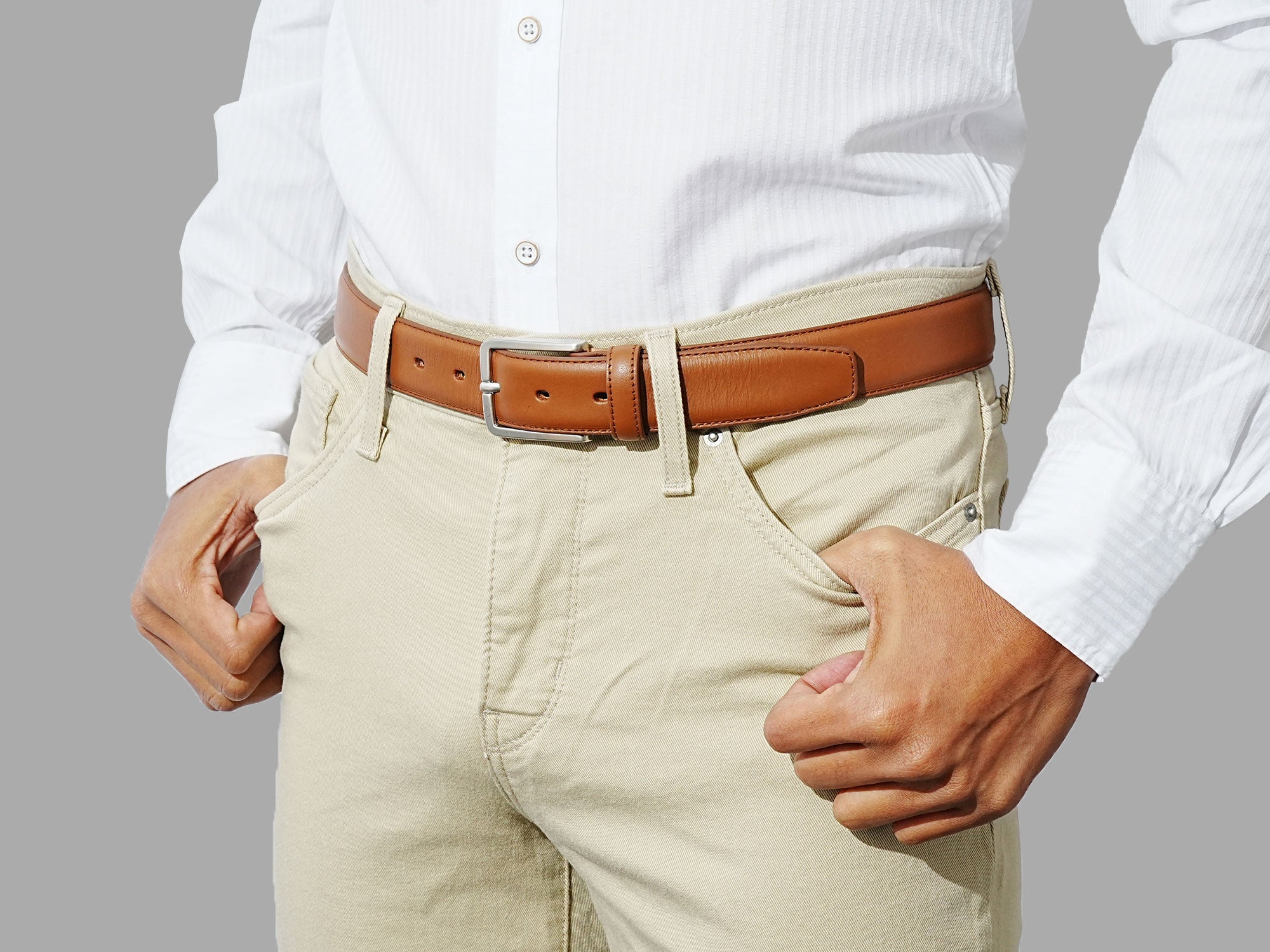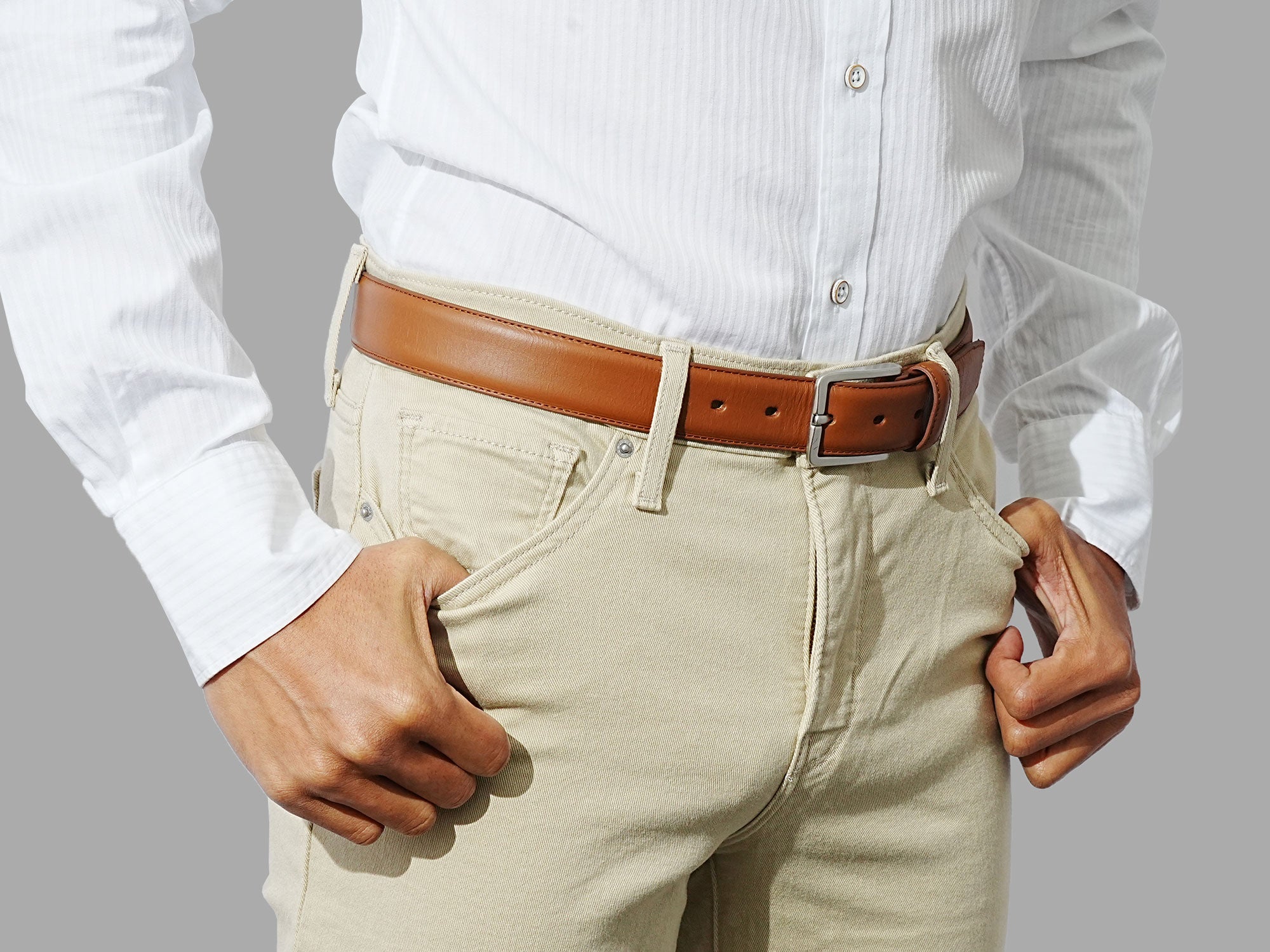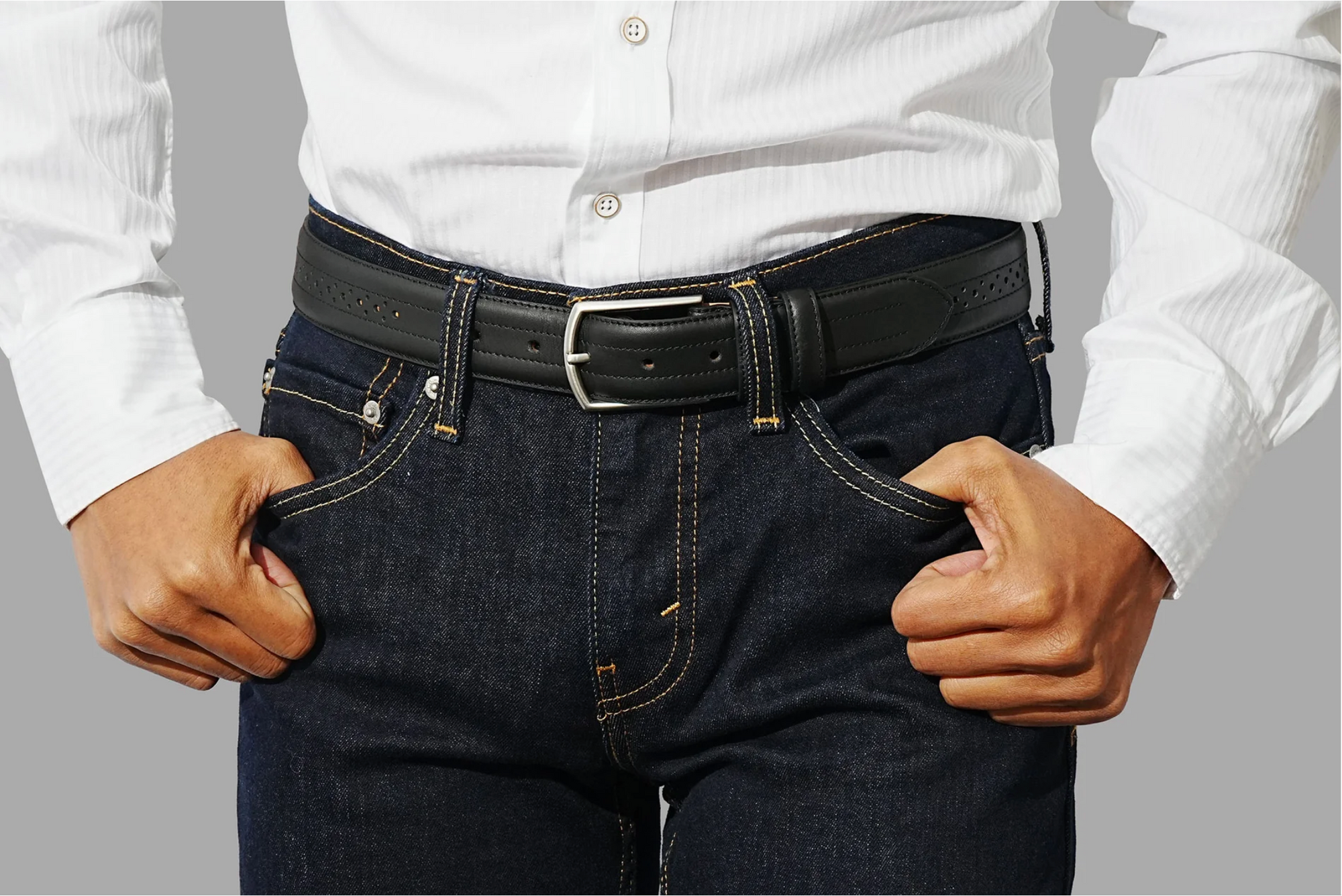 We use metal buckles for their strength, clean finish, and lasting reliability. They secure the belt firmly that complements both casual and formal wear.