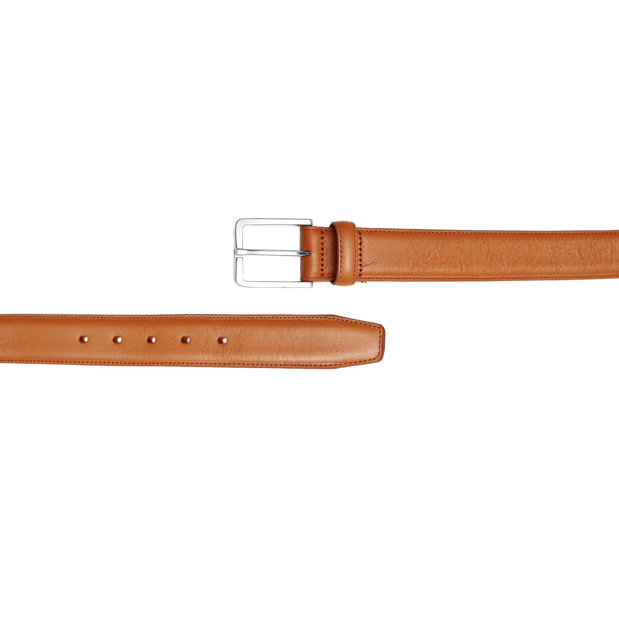 The Stalwart tan leather belt, handcrafted in Spain by skilled artisans, brings warmth and distinct character to both formal and casual outfits. Unlike traditional black belts, tan offers understated aesthetic, making it a standout choice.